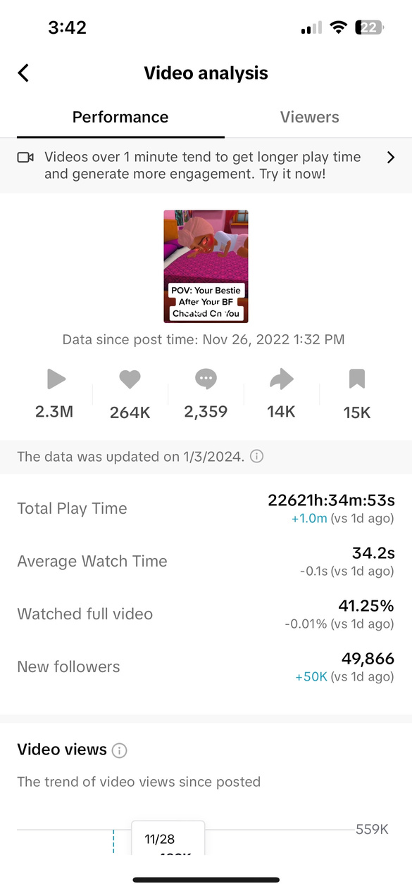 I have been a successful Content Creator and Social Media Manager for 3 years. In 3 months of starting a brand new TikTok account for Frever, I was able to build it to 100K followers. By tracking analytics, using SEO, and knowing what your audience wants, I’m confident that I can grow your brand just as well.
